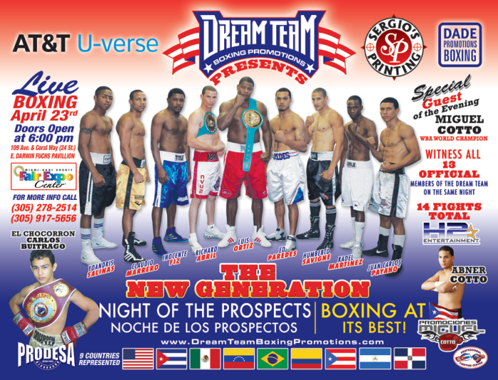 Dream Team Boxing Promotions in Association with Promociones Miguel Cotto & Dade Promotions are providing an interesting card on 23 April from Miami-Dade County Fair & Expo, Miami, Florida.