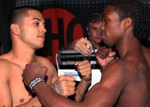 Prescott, the brother of Amir Khan-conqueror Breidis Prescott, would appear to be taking a step up in class. Despite his lofty rankings, Prescott has really yet to be even moderately tested as a pro. Tolmajyan has not exactly fought a who’s who, but has been impressive since dropping a four-round majority decision to still unbeaten Efrain Esquivas back in 2008. Prescott and Tolmajyan both scaled 127-pounds Thursday.