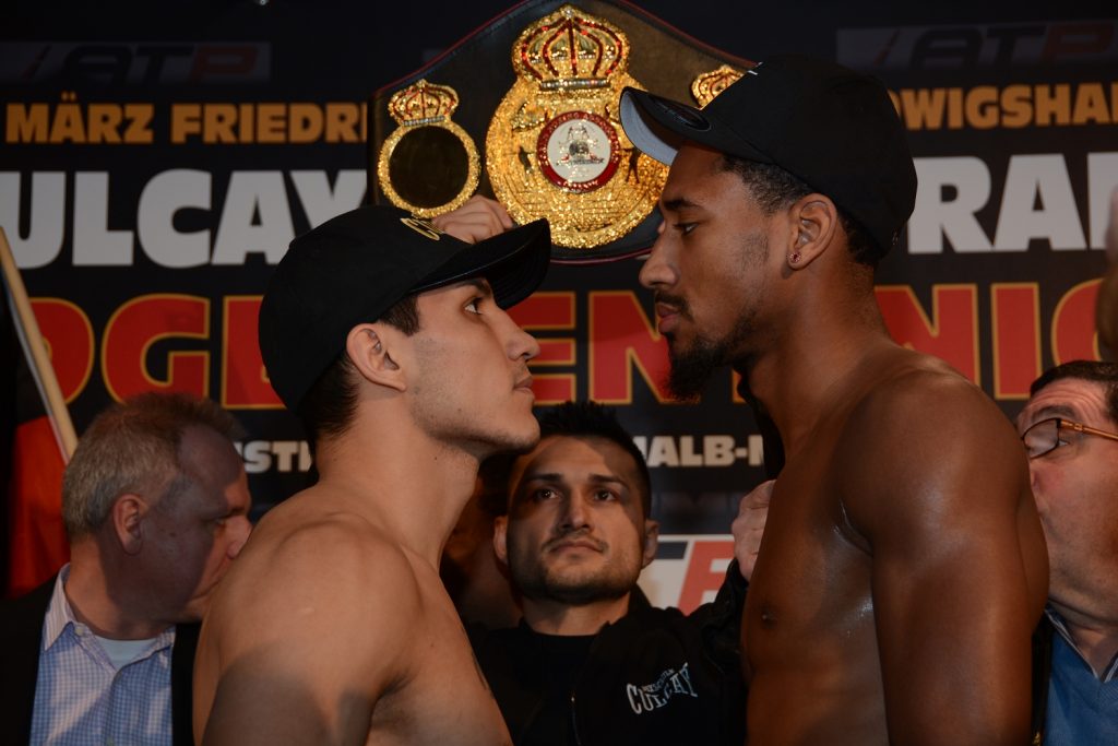 Ludwigshafen, Germany (March 10, 2017)–WBA junior middleweight world champion Jack Culcay weighed in at 153.2 lbs while mandatory challenger and undefeated Demetrius Andrade weighed in at 153.4 lbs at Friday’s weigh in for their championship bout that takes place on Saturday in Ludwigshafen, Germany