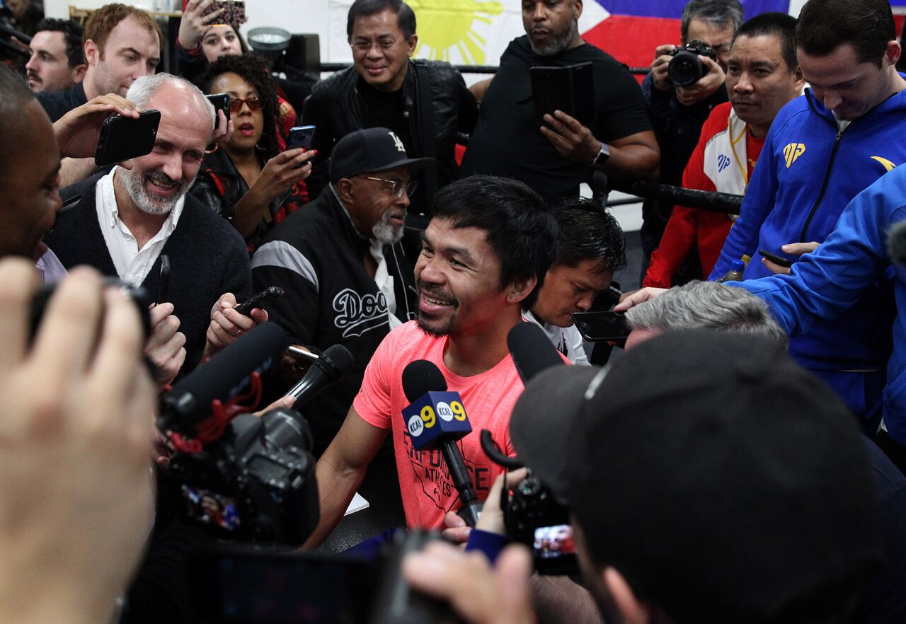 Home Boxing Photo Gallery Manny Pacquiao Media Day Photos Boxing Photo GalleryManny Pacquiao Manny Pacquiao Media Day Photos By Marc Abrams - January 10, 2019 FacebookTwitterPinterestWhatsApp Advertisement – photo credit : Chris Farina – ================================== Advertisement RELATED ARTICLESMORE FROM AUTHOR Manny Pacquiao VIDEO: MANNY PACQUIAO ANNOUNCES RETIREMENT Manny Pacquiao LIVE VIDEO: Pacquiao vs Ugas – Post Fight Press Conference Fights VIDEO: LIVE FIGHTS: Manny Pacquiao vs. Yordenis Ugás: Non-Televised Prelims | PBC ON FOX