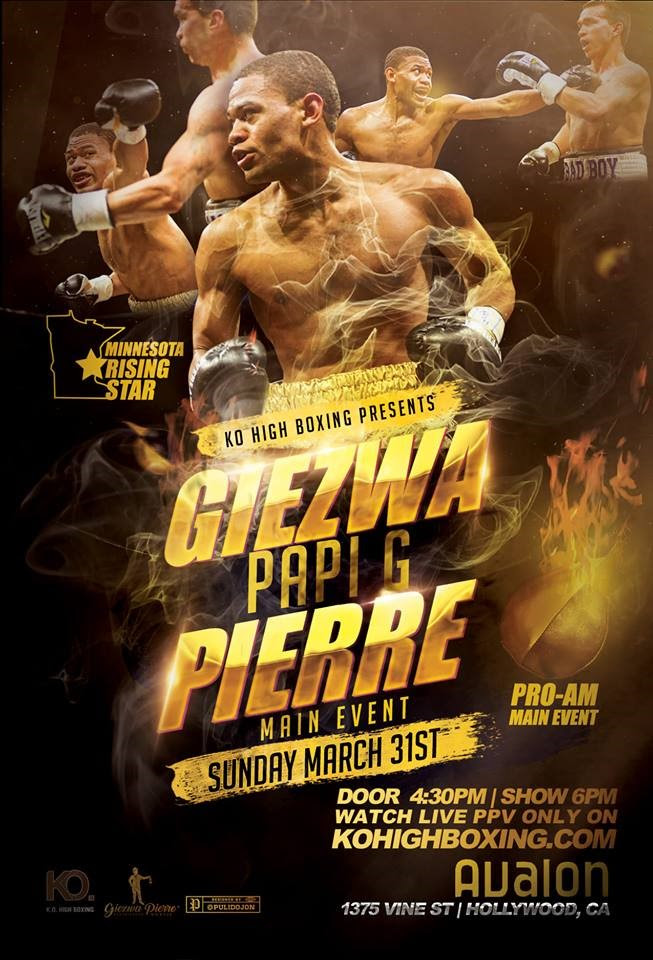 Hollywood, California–On March 31st, Giezwa Pierre Hobbs, aka “Papi G”, is ready to walk the red carpet in Hollywood in only his fifth professional fight after a highly decorated amateur career and perfect start to his professional career. Hobbs will be the first Minnesota native to ever be featured as main event on a live streaming PPV at the Avalon in a night featuring both amateur and professional boxing that is presented by KO. High Boxing.