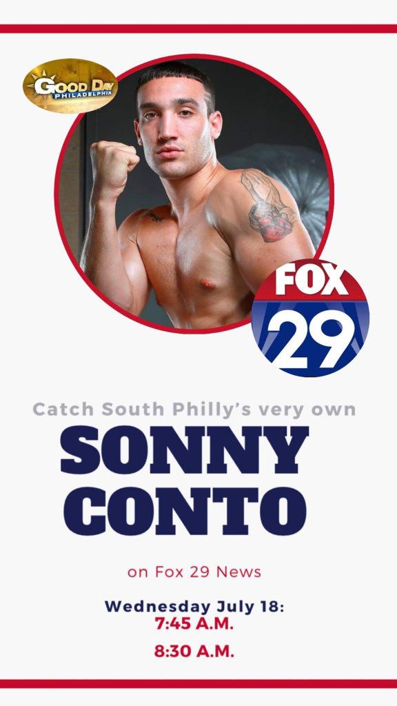 NEW YORK (July 16, 2019)-South Philly’s Sonny Conto, fresh off throwing the first pitch at tonight’s Phillies game, will be featured on Fox 29’s Good Day Philadelphia live tomorrow morning at 7:45 and 8:30 – find out how he made the switch from playing baseball in high school and college to becoming Philadelphia’s real life Rocky!