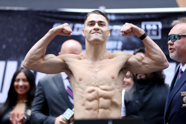 Prograis,142 lbs of New Orleans is 30-3. Diaz, 143.2 lbs of South El Monte, CA is 34-8.