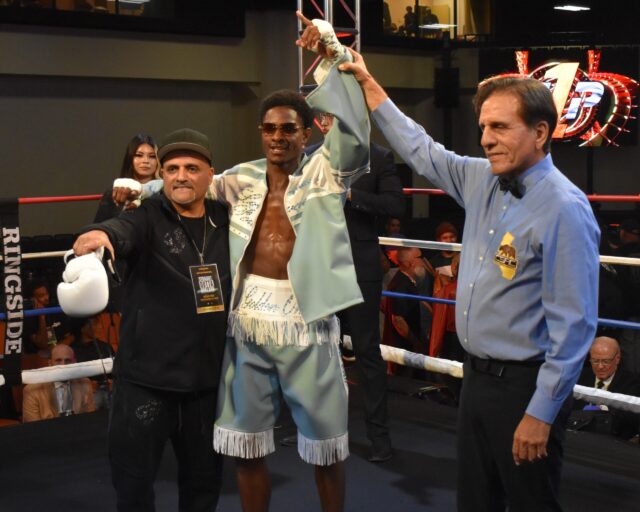 Powell (5-0, 2 KOs) of Sacramento, California moved quickly, forcing Campos (3-5, 1 KO) of Guadalupe Victoria, Baja California, Mexico down to his knees with an unrelenting flurry, highlighted by a left to the body and finished with the right hand. Rojas Campos, 135.4, grimaced in pain and made no signs of getting up as Powell, 136.8, moved to a neutral corner and waited for referee Edward Collantes’ count to reach ten.