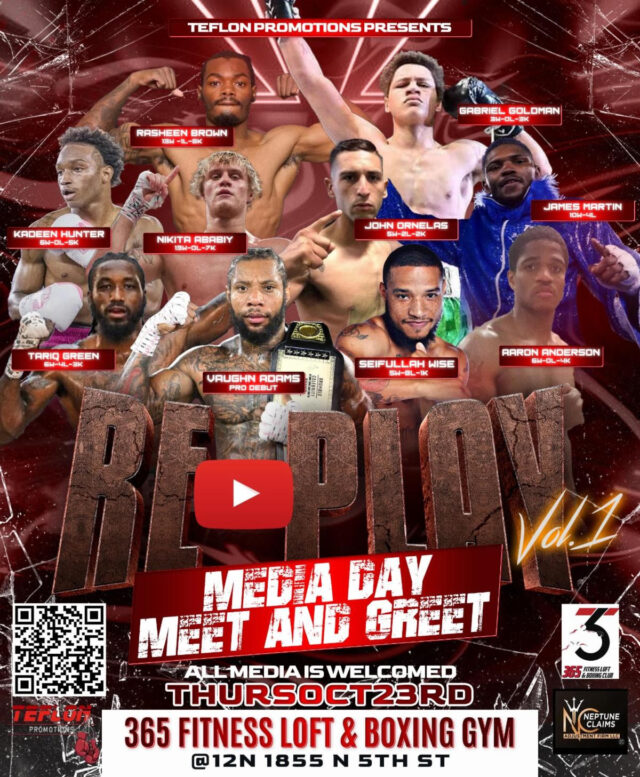 PHILADELPHIA (October 20, 2025)–On Saturday night, November 22nd, Teflon Promotions will present a big night of boxing at the 6th Man Center (4250 Wissahickon Ave, Philadelphia, PA 19129).