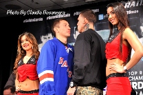Rising sensation Gennady Golovkin (24-0, 21 KOs, 160lbs) had a strong Kazakhstan showing when he defended his middleweight title against the talented Gabriel Rosado (21-5, 13 KOs, 159lbs). Golovkin’s reputation preceded him as in the first few rounds; Rosado utilized a great deal of movement and was very hesitant to throw punches. Golovkin was not flustered by this and walked Rosado down into the ropes and landed some strong blows. In the second round, a right hand from Golovkin opened up a cut over the left eye of Rosado, and it wasn’t long before the blood started pouring out of it. Golovkin just continued to apply the pressure, giving Rosado no room to breathe. Referee Steve Smoger kept a close eye on Rosado’s cut, which was getting worse and worse, and it looked like he was ready to stop the action, but Rosado’s cutman was able to contain the bleeding just a bit, but it was an impossible task. In the seventh round, Golovkin seemed to be going for the KO, and that was when Rosado’s corner stepped up onto the apron and threw in the towel. Golovkin successfully defended his title with a seventh round technical knockout at the 2:46 mark of round seven.