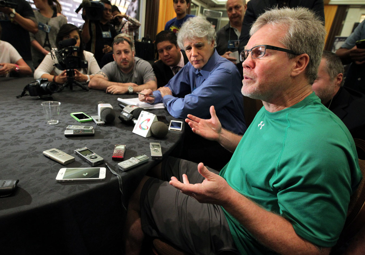 Arum began the news conference by introducing Richard Sturm, MGM President of Entertainment & Sports as “the president of hanging posters for the wrong fight.’’